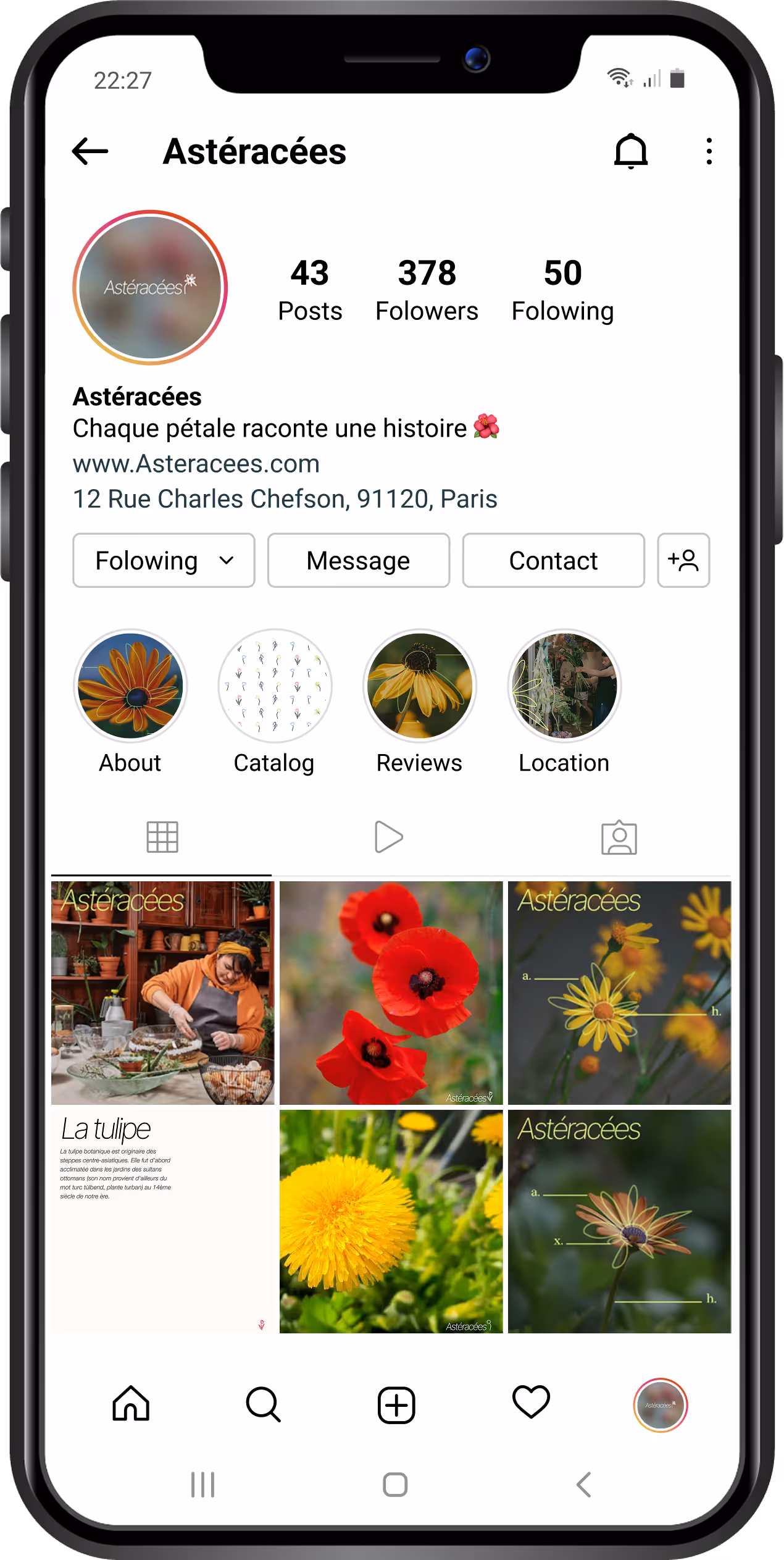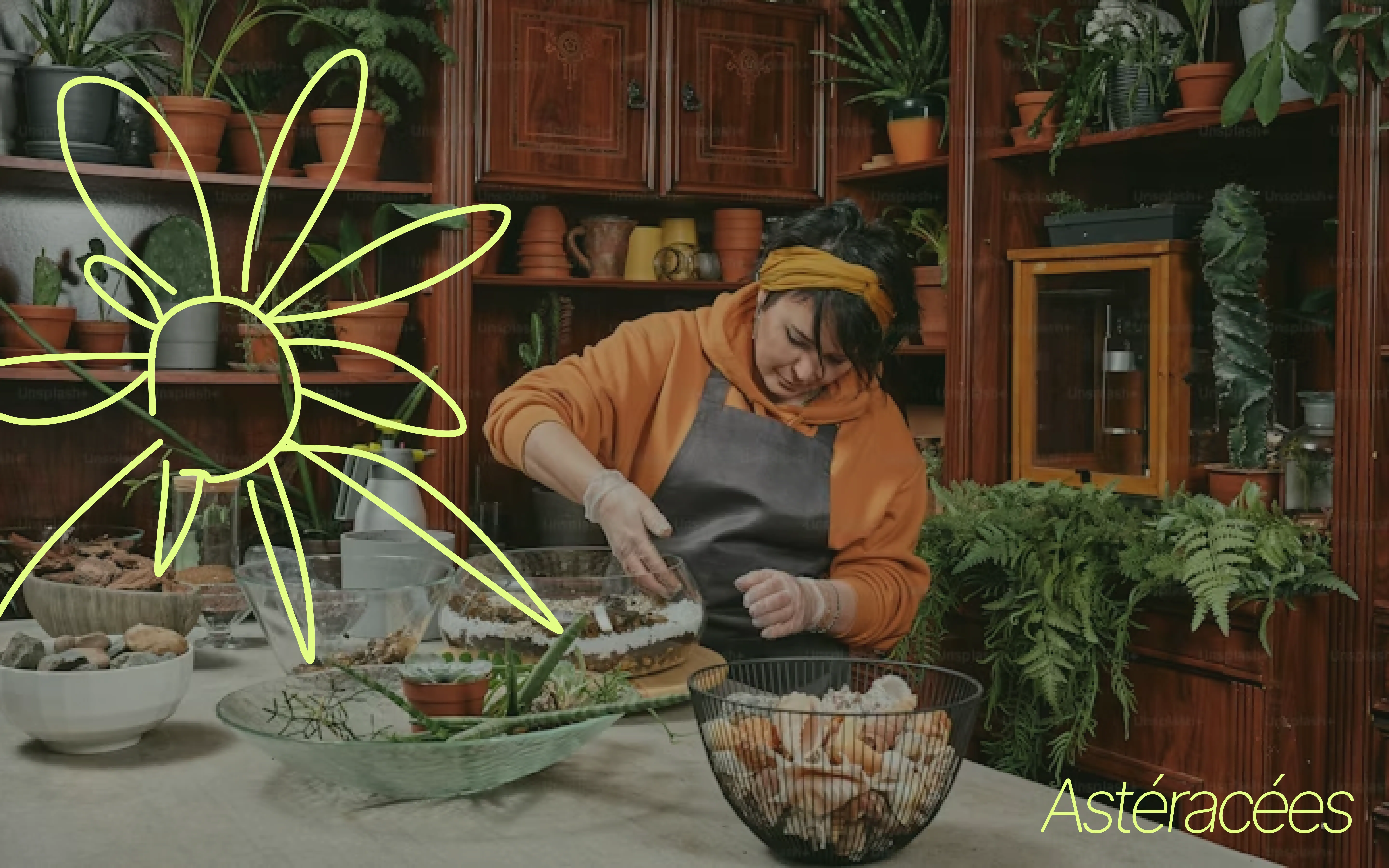 Une identité forte, vivante et authentique, qui exprime la passion du végétal et la beauté du geste artisanal. Asteracées incarne un fleuriste moderne : créatif, inspirant et profondément humain.